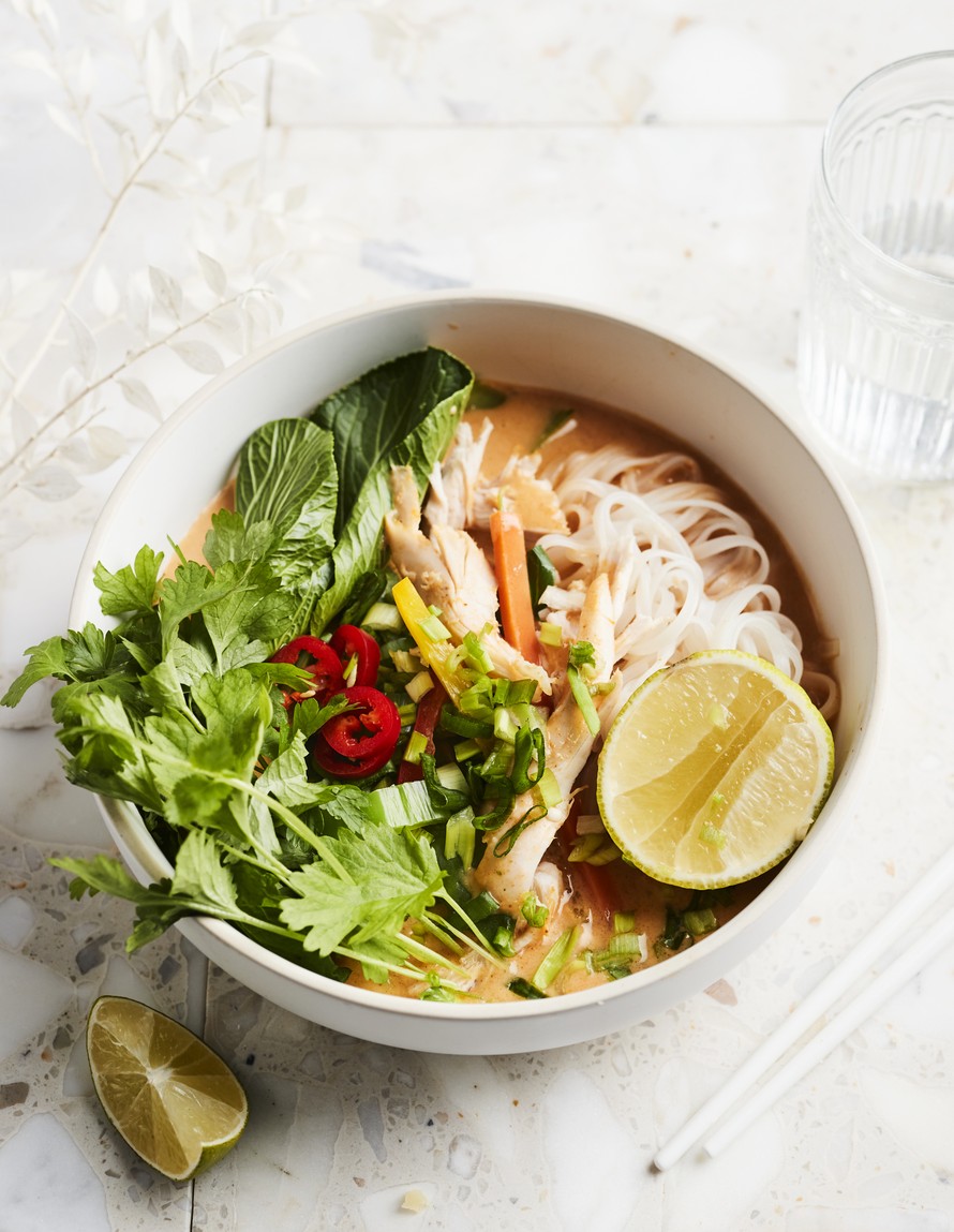 Nuudelikeitot ovat kiireisen kokin pelastus. Aasialaisia makuja pursuava broileri-kookoskeitto valmistuu pikaisesti kypsästä broilerista ja valmiiksi pilkotuista kasviksista.