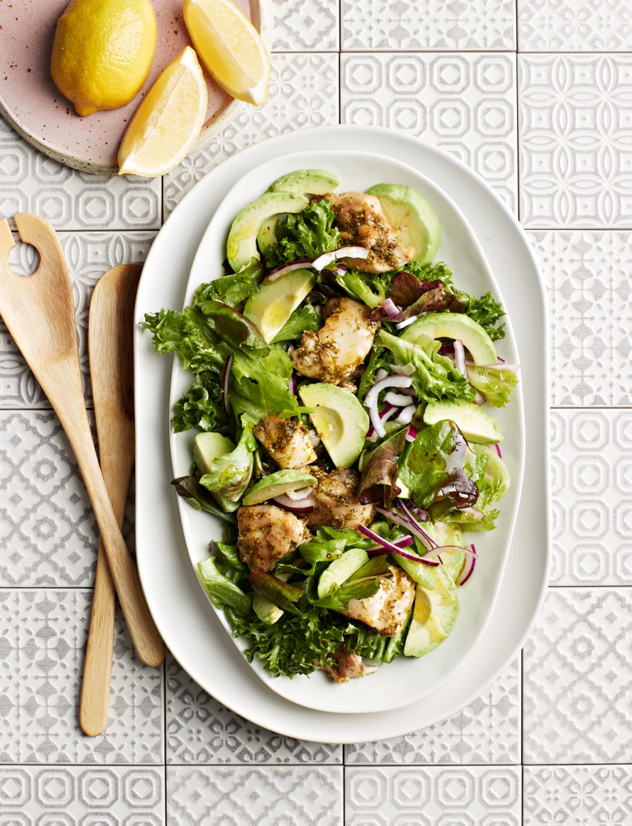 Tämän salaatin juju on yksinkertainen: mehevät kananpojan paistileikkeet ja reipas puristus sitruunaa.