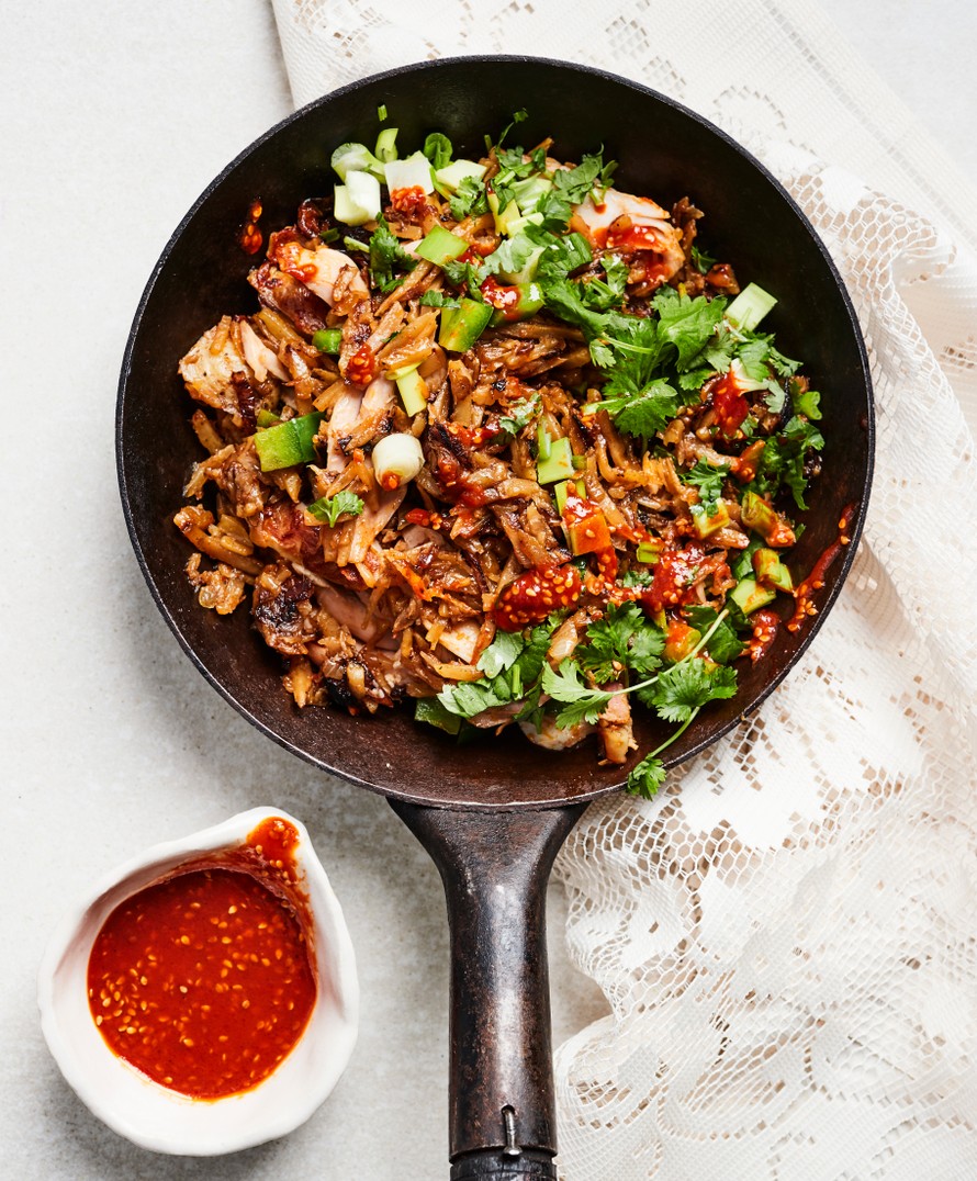 Aasiassa pyttipannu valmistetaan usein raastetusta perunasta ja se muistuttaa hieman röstiperunoita. Tämän broileripyttiksen maustaa kastike, joka saa potkua srirachasta.