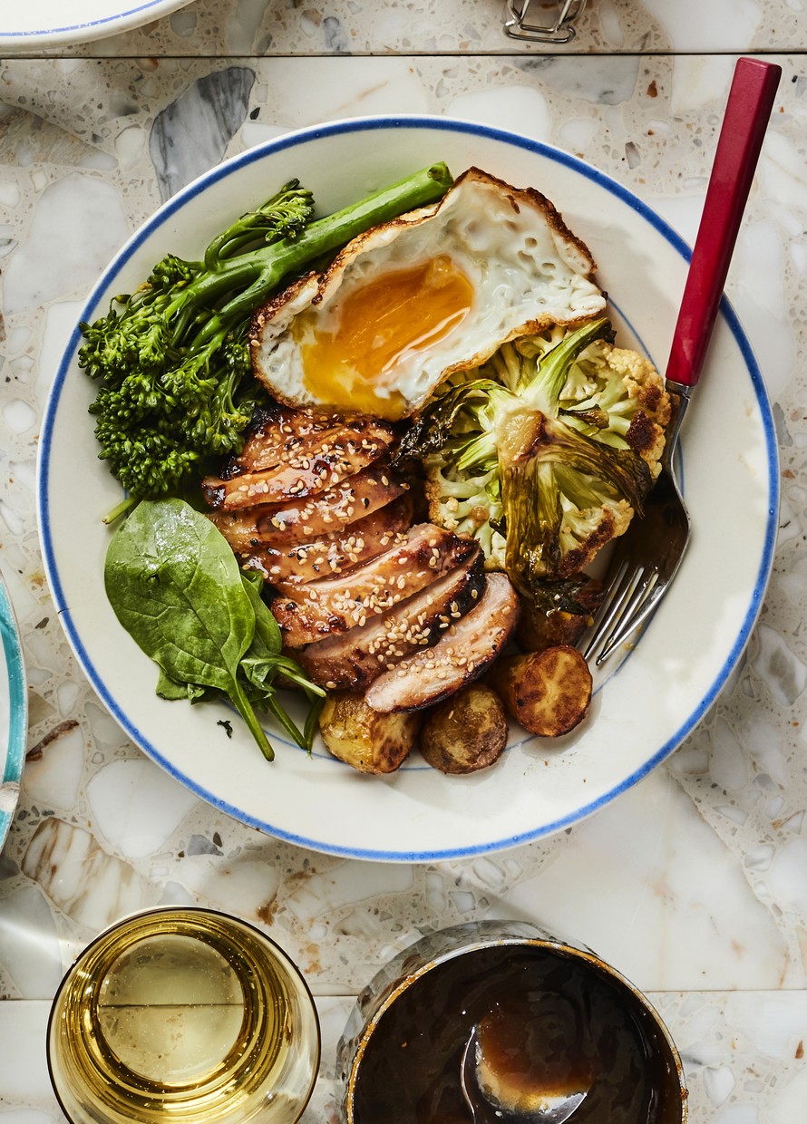 - Kokoa kulhot, viipaloi paistileikkeet muiden ainesten päälle. Viimeistele kulhot lopulla kastikkeella.