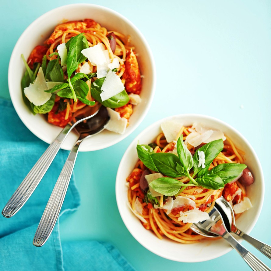- Tarjoa pasta tomaatti-kanakastikkeen kera parmesaanilla ja basilikalla höystettynä.