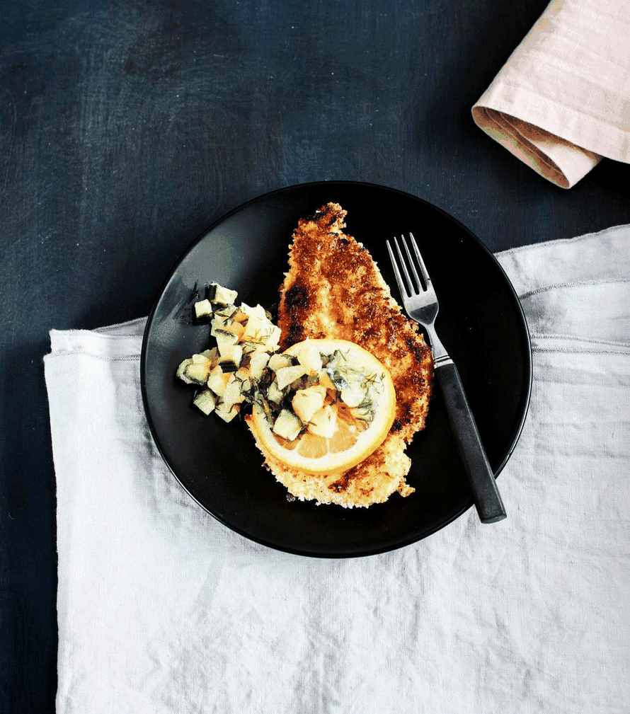 Wienerleikkeen voi valmistaa myös kananpojasta. Herkullisen ja erityisen rapean leivityksen saat, kun käytät pankojauhoja.