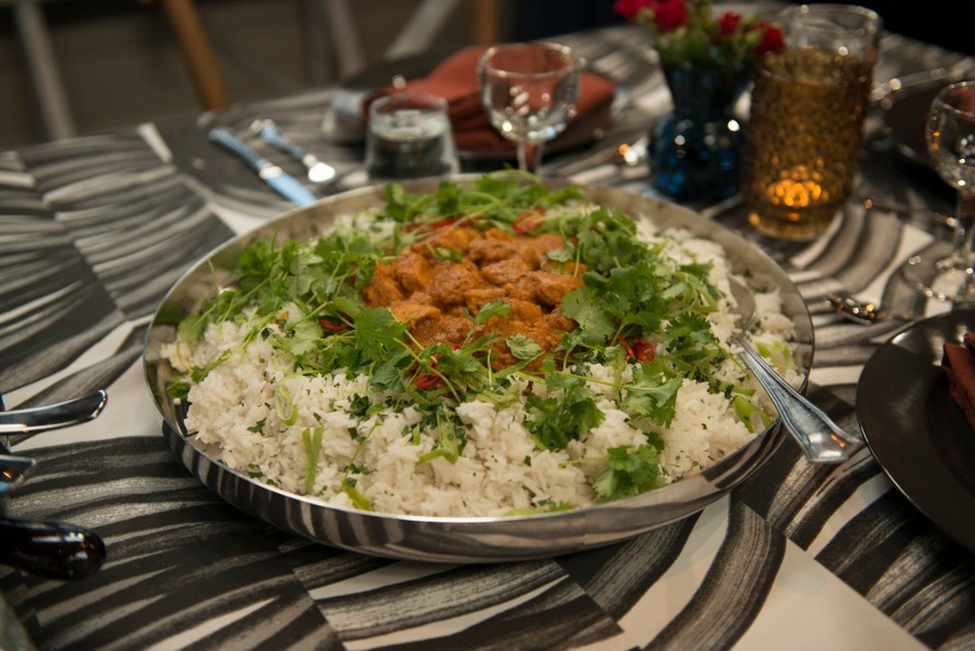 3. Lisää lopuksi padan päälle tuore, silputtu korianteri. Tarjoile riisin, raidan ja naanleivän kanssa.