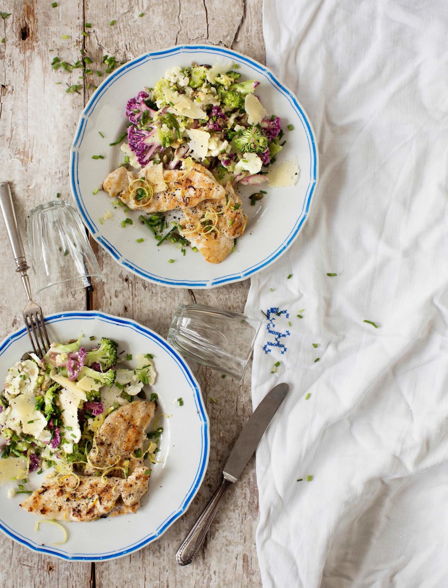 Kukkakaalisalaatti ja grillattu sitruunabroileri