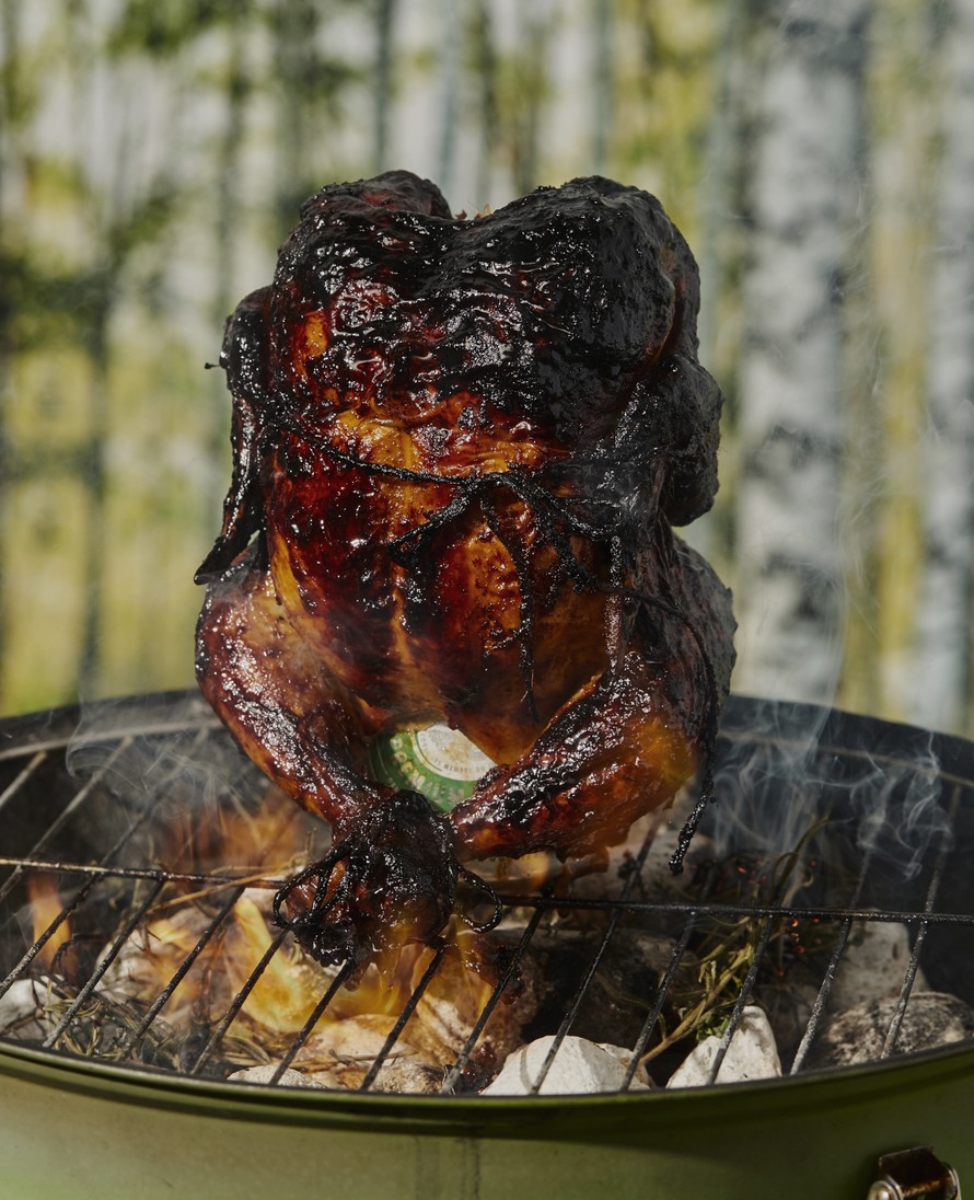 Jenkkiläinen grillikassikko oluttölkkikana kypsyy kahdesta suunnasta: grillin lämpö paahtaa ulkopuolelta ja kanan sisällä tölkissä kiehuva olut hyörykypsentää linnun sisältä. Lopputuloksena on mielettömän mehukas grillibroileri.