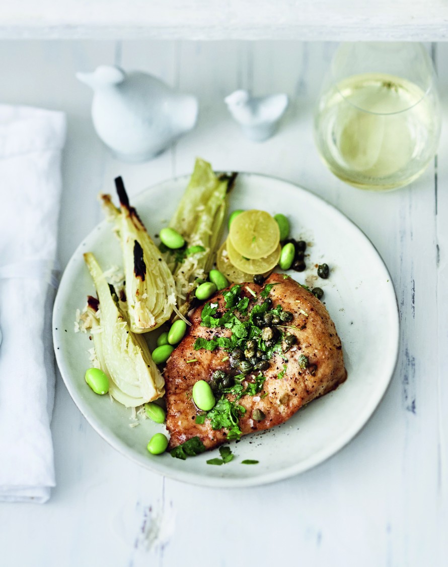Italialaisen sitruunabroilerin ja fenkolin juomapariksi sopii raikas italialainen valkoviini, kuten piemontelainen Cortese-rypäleestä valmistettu La Luciana Gavi 2016 (13,51 e). Siinä on annoksen kaipaamaa hapokkuutta ja sitruksisuutta, ja mieto valkopippurisuus toimii erityisesti papujen runsaan maun kanssa.