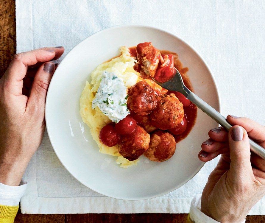 - Hauduta pullia kastikkeessa noin 15 minuuttia. Tarjoa peruna-fenkolimuusin ja rahkatsatsikin kanssa.
