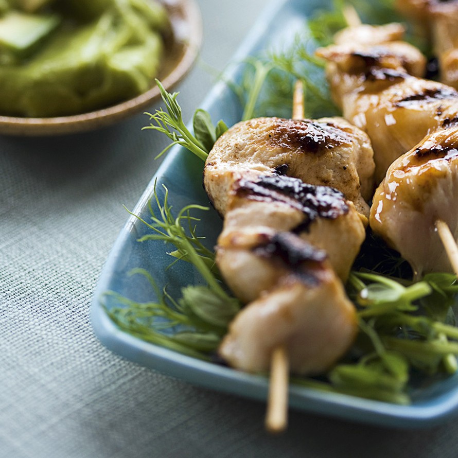 - Tarjoa vartaat keitetyn riisin, avokadotahnan ja dipin kanssa.