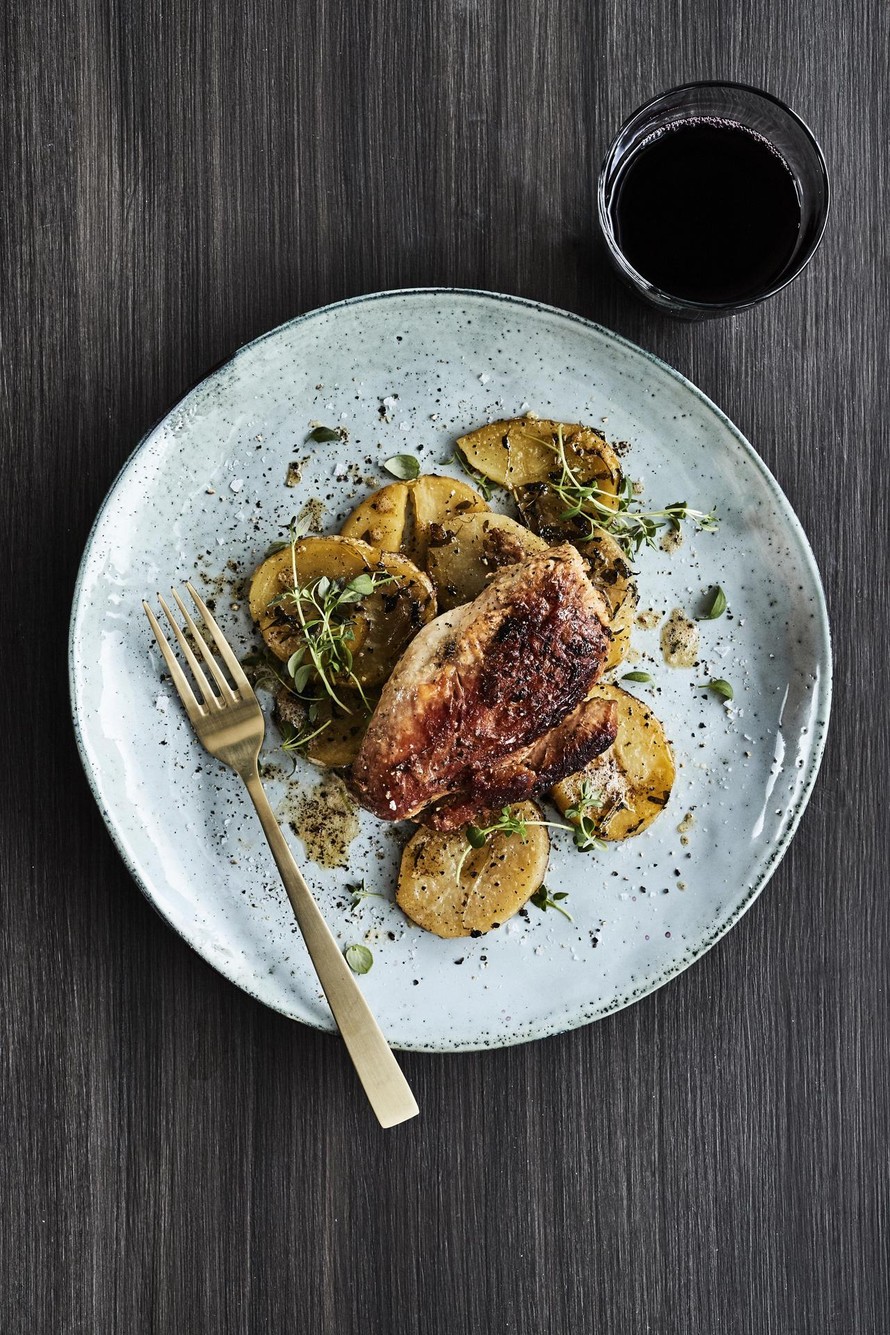 Maalaiskananrintaa timjamin ja perunoiden kanssa