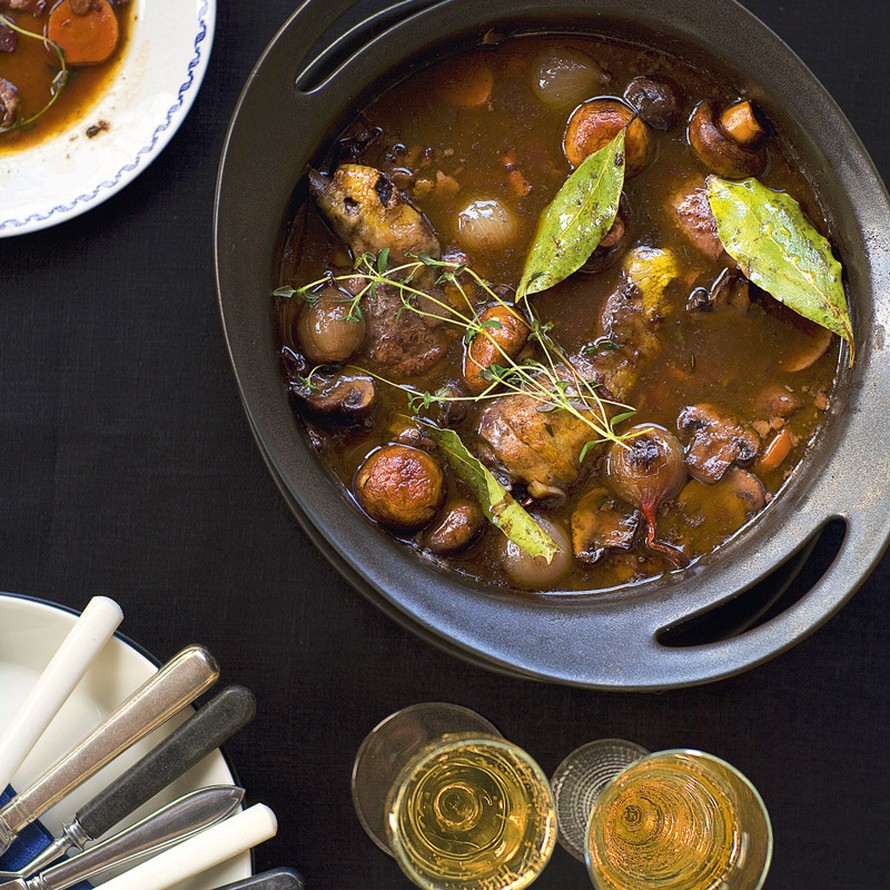 Coq au vin eli kukkoa viinissä