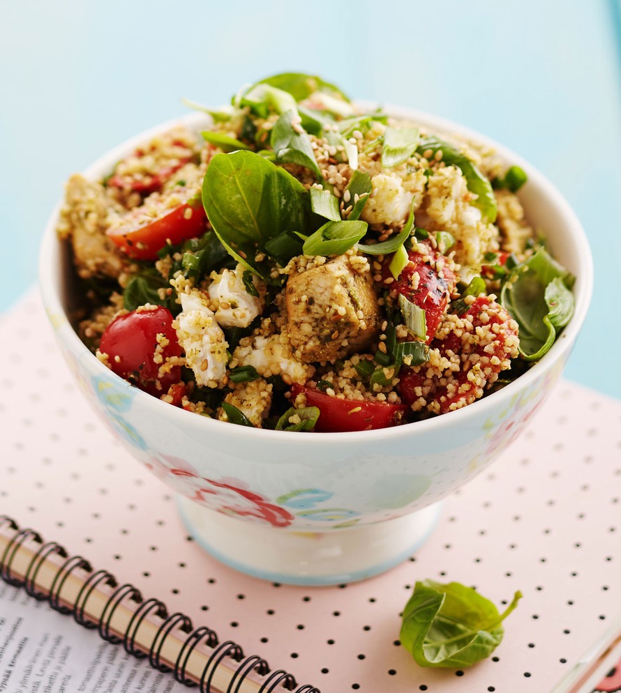 Broileri-couscoussalaatti on todellinen monitoimiruoka: se sopii niin arkiseksi lounaaksi kuin juhlavaan buffettiin.
