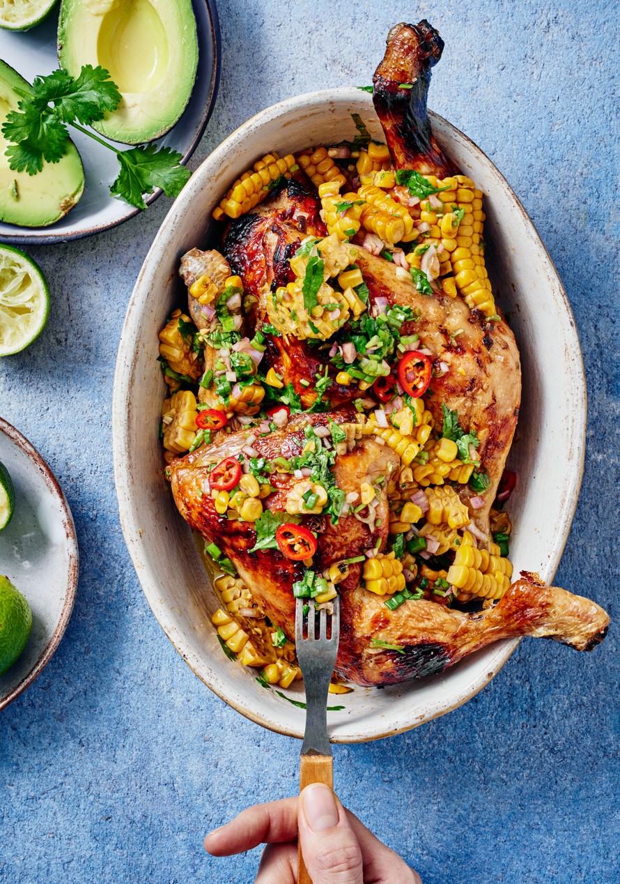 Marinoidut broilerin koipi-reidet paistuvat näppärästi uunissa. Keitä lisäksi riisiä tai irrottele lihat tortillalättyjen sisään!