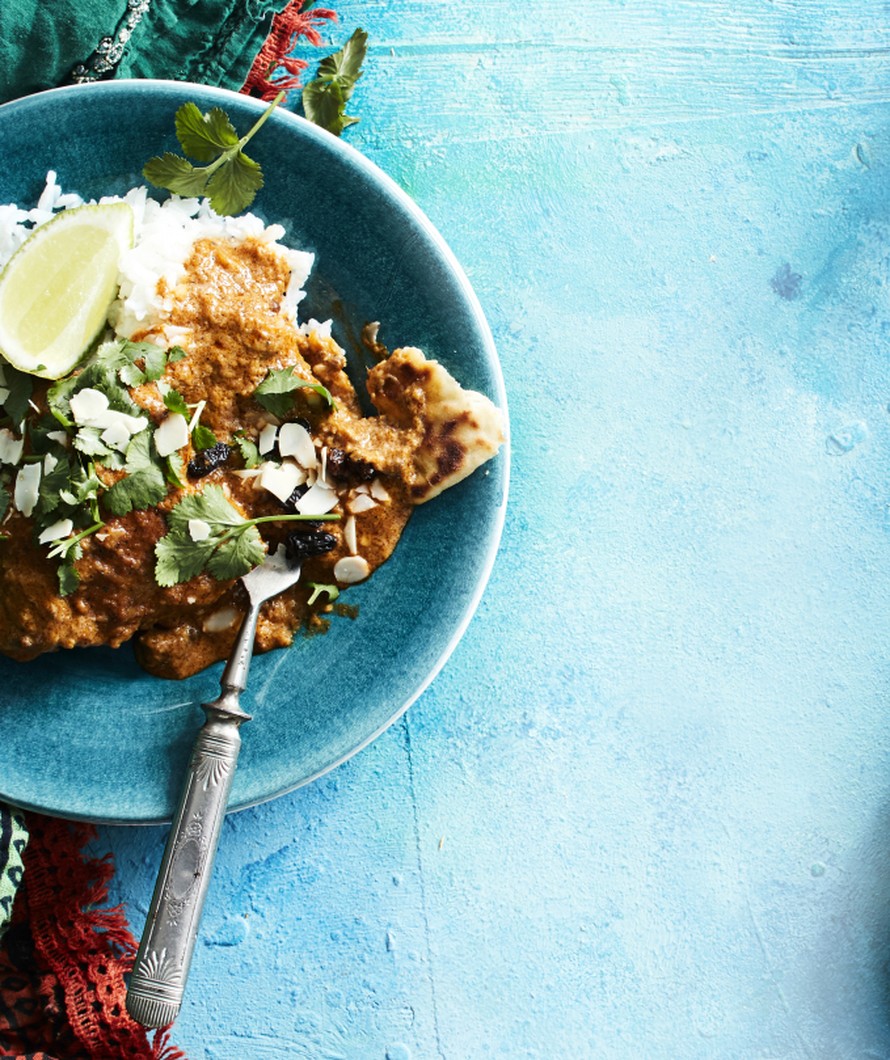 - Lisää lopuksi rusinat ja mausta suolalla. Tarjoile keitetyn basmatiriisin kanssa.