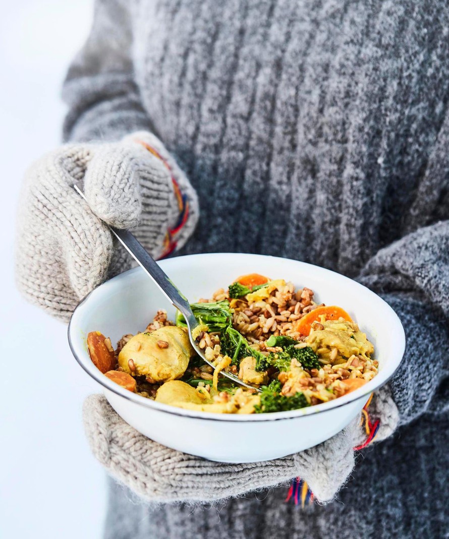 Vinkki! Kasviscurryn teet jättämällä broilerin pois ja lisäämällä joukkoon paloiteltua tofua tai purkillisen kikherneitä.