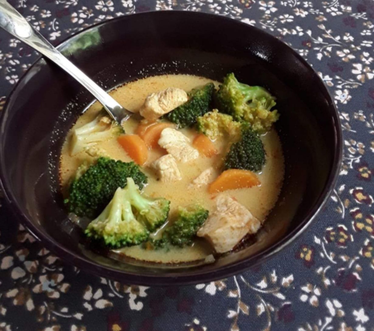 Helppo kana-kookoskeitto joka valmistuu nopeasti. Makua voi säädellä ainesten suhteilla.