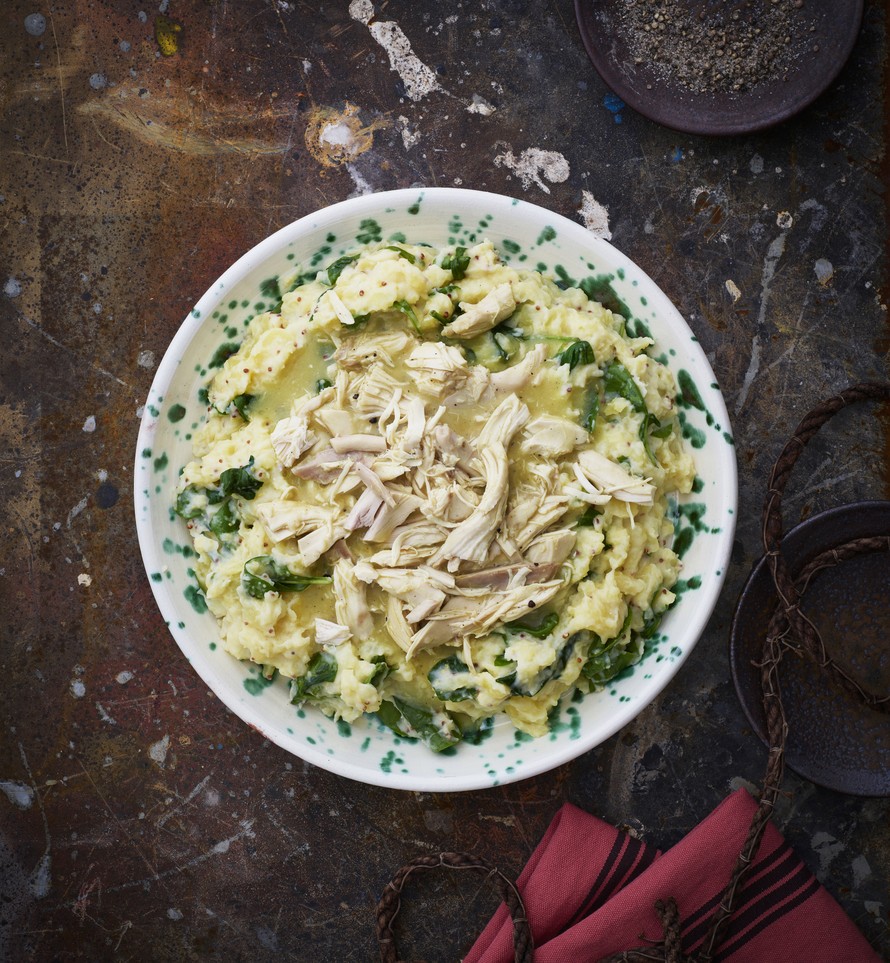 - Lämmitä muusi. Sekoita babypinaatit perunoihin muusinuijalla. Pinaatti saa vähän rikkoontua perunoiden joukkoon. Tarjoa viillokki muusin kera.