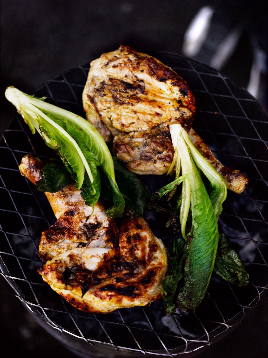 - Grillaa broilerinpuolikkaat kypsiksi miedolla lämmöllä välillä käännellen (noin 20-25 minuuttia). Mausta broilerit lopuksi vielä suolalla ja mustapippurilla.