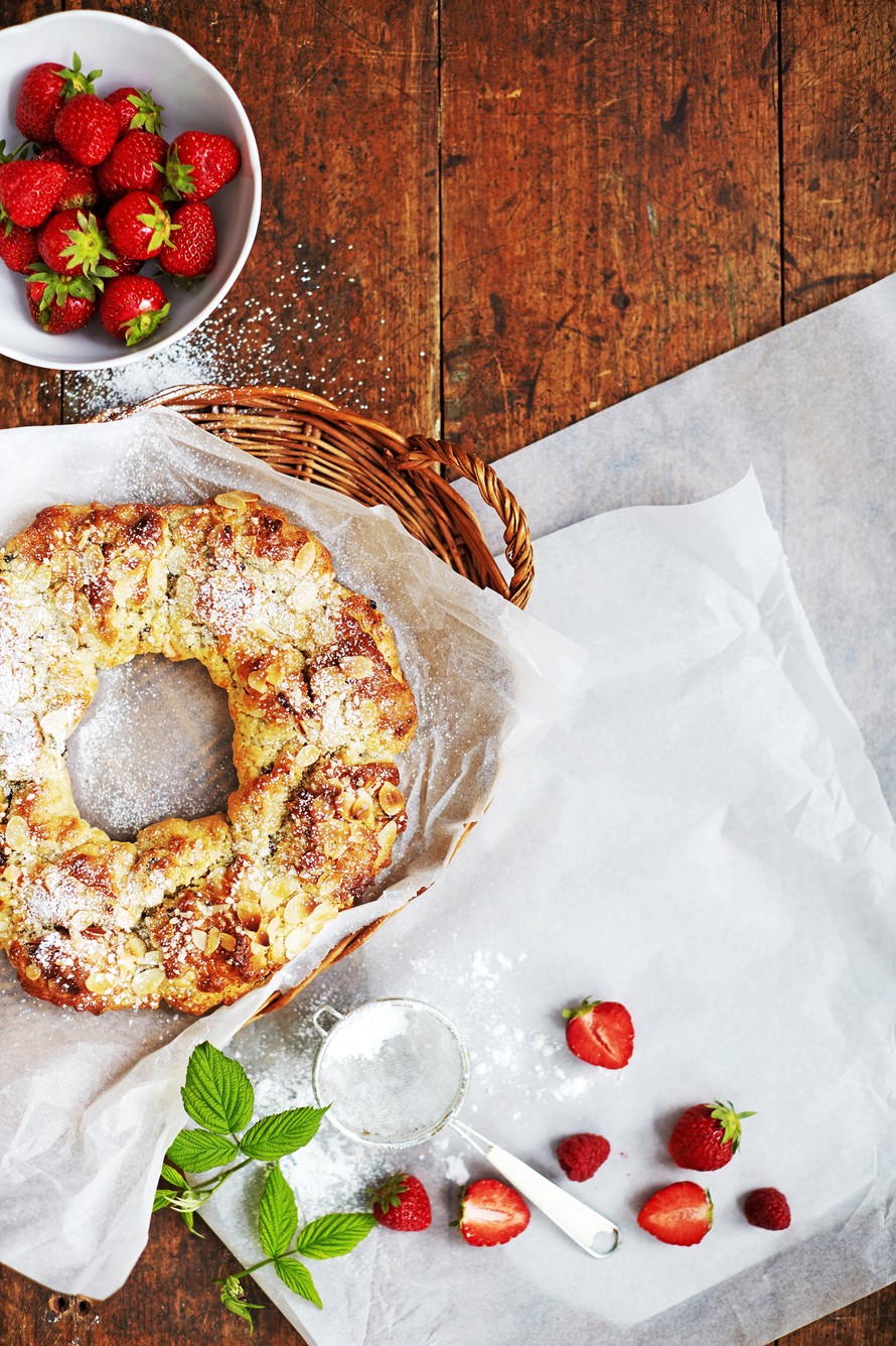 Tämä mehevä pullakranssi syntyy hetkessä ilman hiivaa.