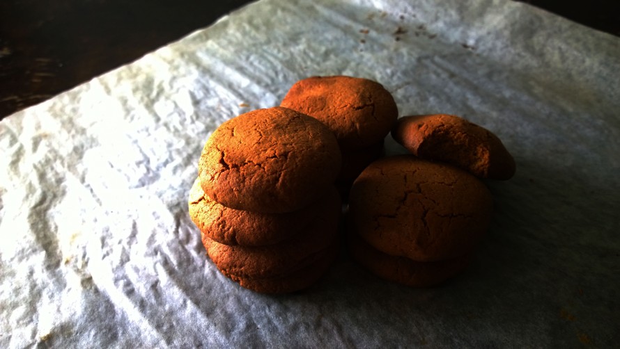 2.Muotoile taikinasta n.10 palloa ja litistä ne kekseiksi. Paista leivinpaperin päällä 175°C n. 13min.