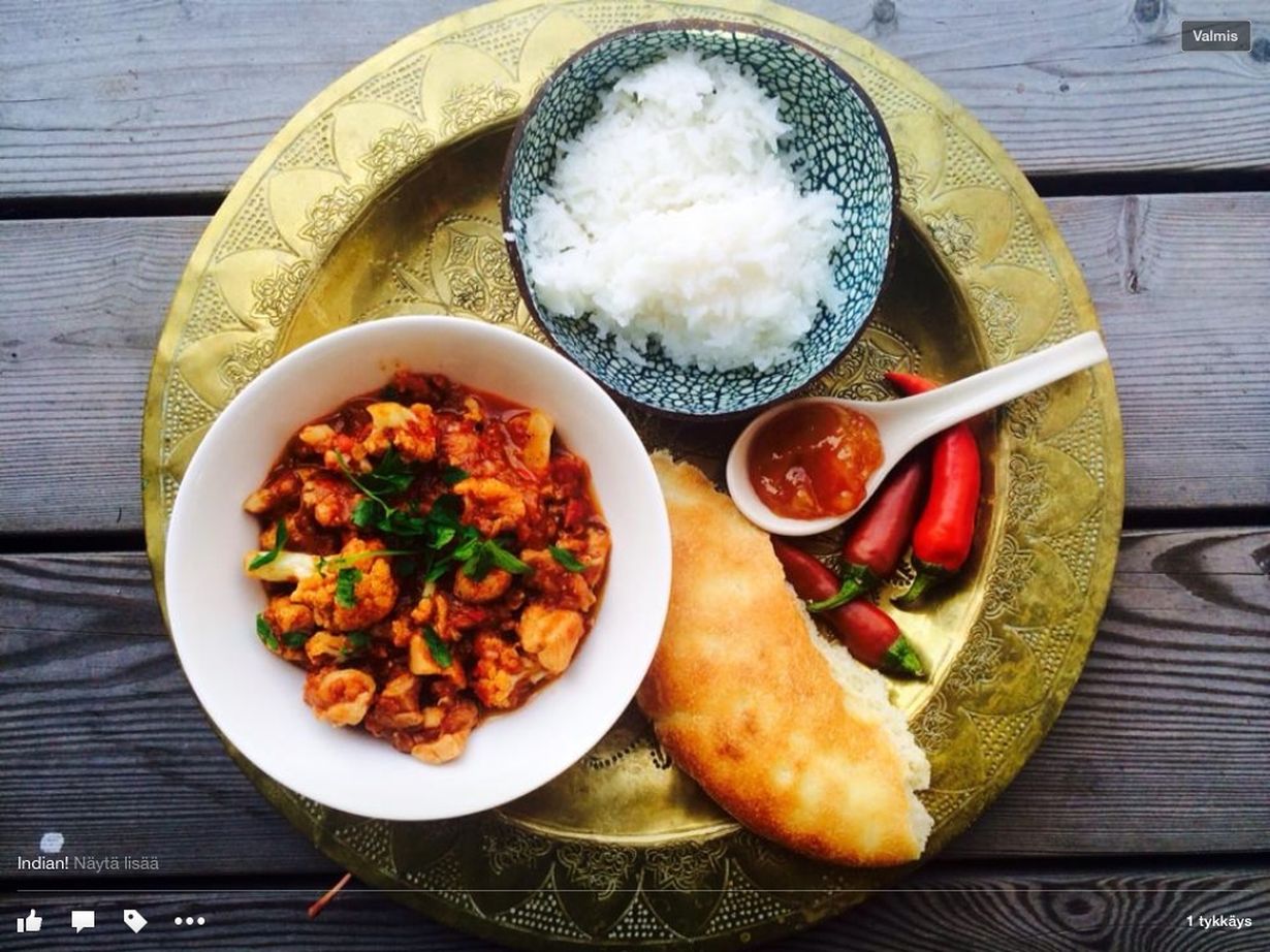 Intialainen keittiö on yksi kokatuimmista meidän keittiössä. Olemme laittaneet intialaista ruokaa kotona jo 15-vuotta. Intialainen kokki oli todella otettu, kun kehuimme hänen ruokiaan. Goalla hotellissa uima-altaan äärellä oli 2 kertaa viikossa kokkailunäytöksiä. Tämä tulinen kana-curry on yksi niistä. Tarjoile basmati-riisin, mango-chutneyn ja naan-leivän kanssa.