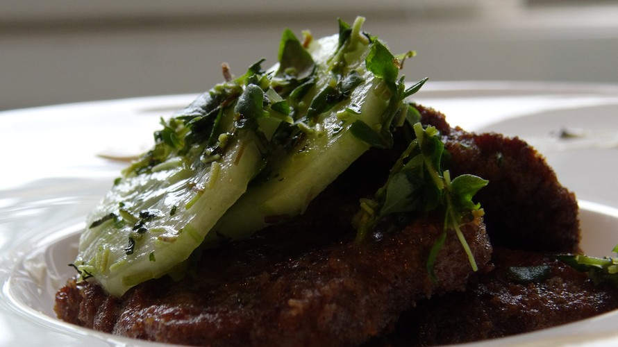 Minulla sattui olemaan pakkasessa suomalaista härän sisäfilettä ja ajattelin tehdä niistä pihvejä. Tulin kuitenkin toisiin ajatuksiin ja kehittelin tämän reseptin. Ohueksi leikattu liha paneroidaan munassa sekä korppujauhoseoksessa ja paistetaan kuumalla pannulla voissa.