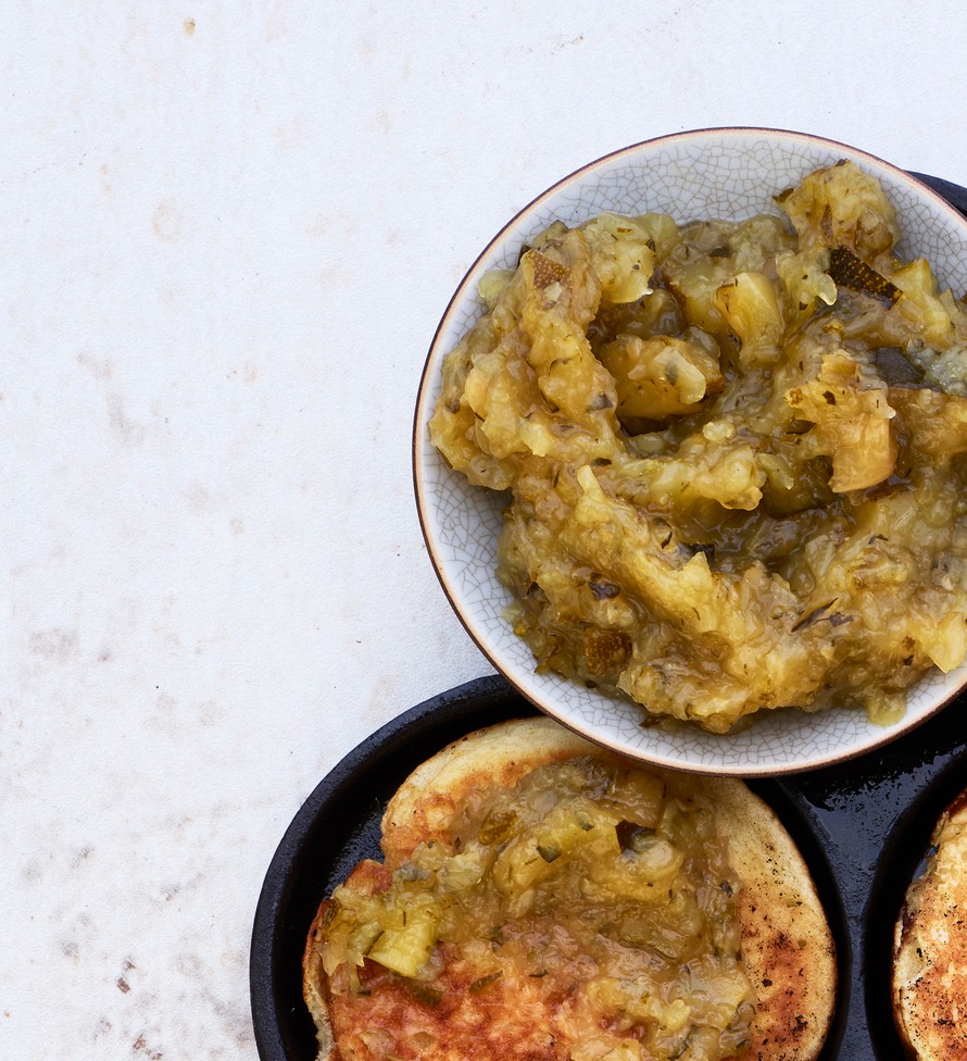 Earl Grey -teellä ja sitruunalla maustettu kesäkurpitsahillo on täydellistä seuraa skonsseille tai letuille.