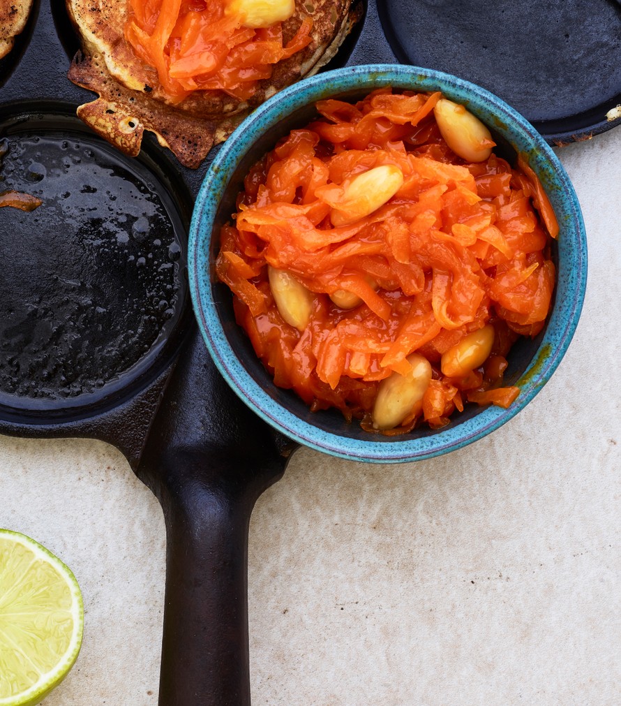 Syksyisessä porkkanahillossa maistuvat hunaja, kaneli ja limetti. Mantelisattumat tekevät hillosta niin hyvää, että sitä tekisi mieli lusikoida suoraan purkista! Tarjoa hillo lettujen kanssa tai vaikka paahtoleivän päällä.