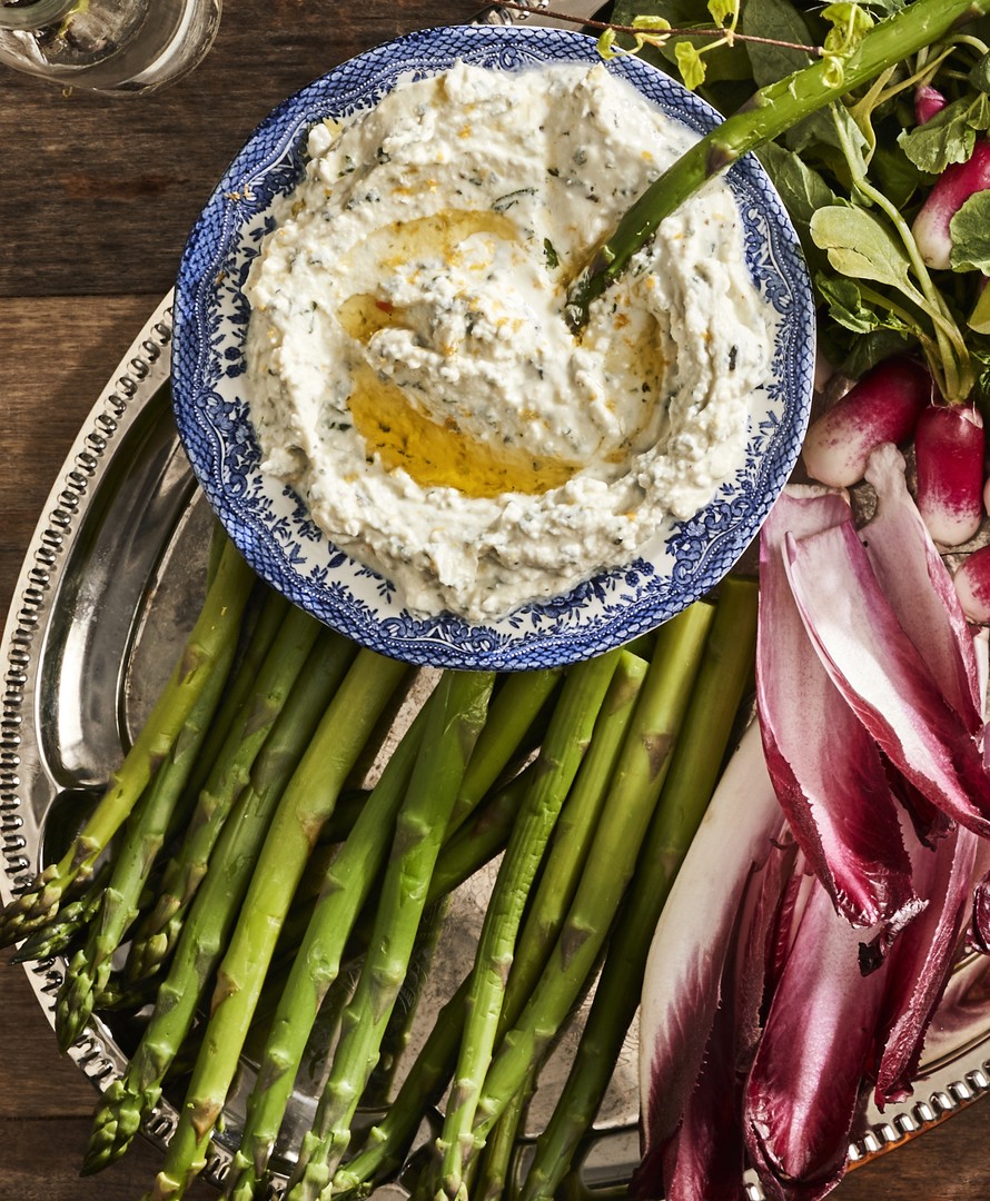 - Hienonna yrtit ja sekoita joukkoon. Voit valmistaa dipin myös sauvasekoittimella tai käsivatkaimella. Murenna silloin fetajuusto ensin pieneksi. Tarjoa parsojen kanssa.