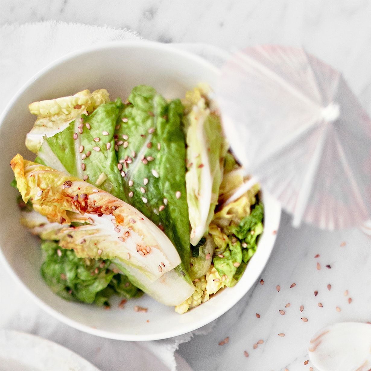 - Kuori ja hienonna valkosipuli ja inkivääri mahdollisimman pieneksi. Yhdistä ne kalakastikkeen, etikan ja sokerin kanssa. Lisää chili, ruohosipuli ja seesaminsiemenet joukkoon. Sekoita kaalin kanssa. Anna maustua vähintään 1 tunti.