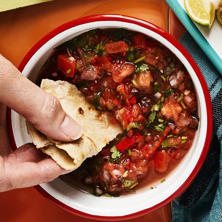 Taconrakastajan kannattaa opetella pico de gallon resepti ulkoa. Tuoretomaattisalsan ainekset on helppo löytää ja se sopii tacoon kuin tacoon. Kaikki kypsät tomaatit käyvät, mutta lihaisat pihvitomaatit tuovat salsaan erityisen rakenteen.
