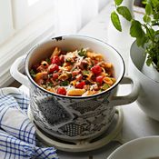 - Lisää yrtit ja mausteet kattilaan ja keitä vielä 10 minuuttia.
