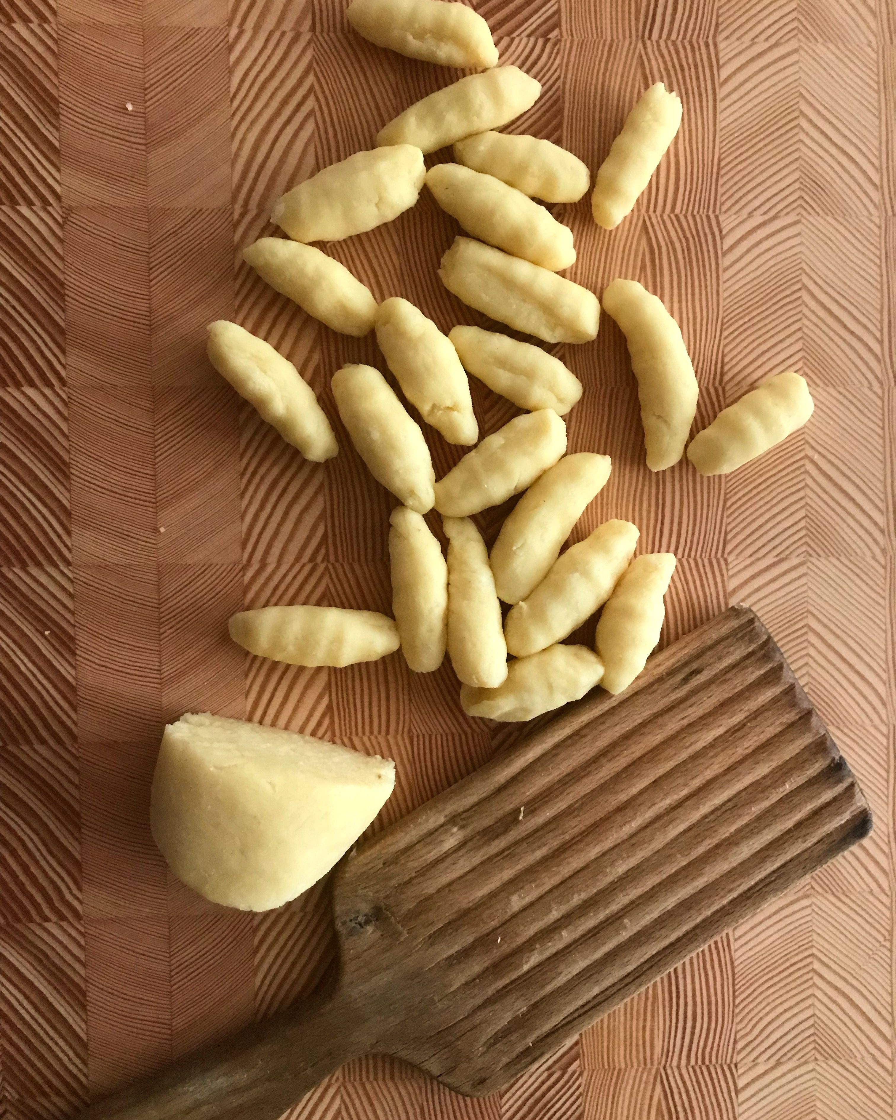 Liian kovakourainen ja pitkä vaivaaminen saattaa saada aikaan sitkon ja kumimaisen rakenteen, ja liiallinen jauhomäärä vaikuttaa sekin rakenteeseen ei-toivotulla tavalla. Kun taikina on valmis, voit tehdä gnocchit saman tien. Jos haluat gnoccheihin uurteita, pyöräytä ne uurretun lastan tai haarukan kautta työpöydälle.