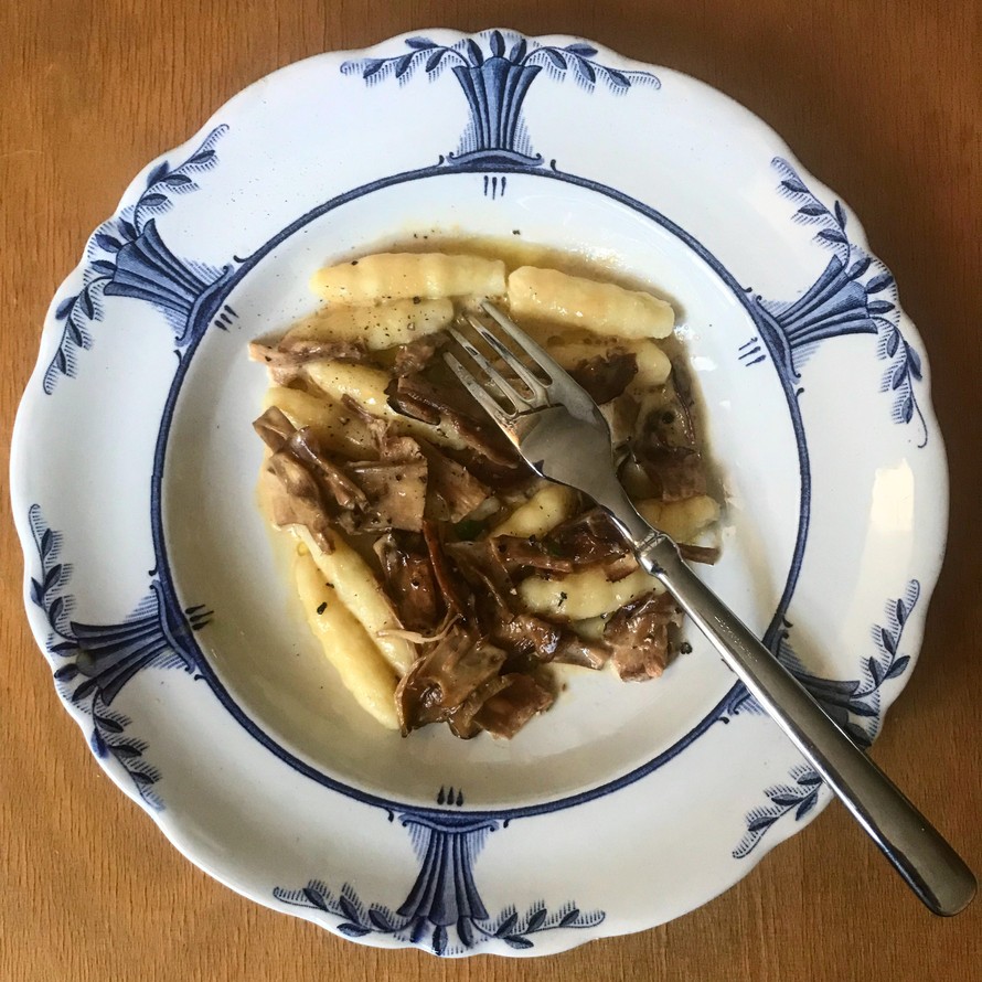 - Laita iso kattila vettä kiehumaan. Tee tässä välissä myös tattikastike valmiiksi, sillä gnocchien tekeminen on nopeaa, ja ne kypsyvät parissa minuutissa. Sulata voi pienessä kattilassa tai pannussa ja laita viipaloidut tatit pannuun. Paista tatteja muutama minuutti, kunnes enin neste on haihtunut. Jos käytät kuivattuja tatteja, liota niitä ennen kokkausta 15 min, purista kuiviksi ja lisää pannuun kuten tuoreet. Lisää kerma ja vesi. Anna porista hissuksiin vähintään 5 minuuttia niin, että kerma keittyy hieman kasaan. Mausta lopuksi suolalla ja mustapippurilla sekä tilkalla sitruunamehua. Ohenna tarvittaessa lisäämällä vettä tai kermaa.