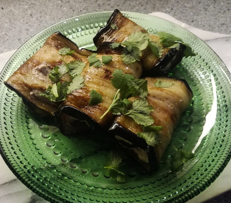 Georgialainen Badrijani Nigvzit (täytetyt munakoiso rullat)