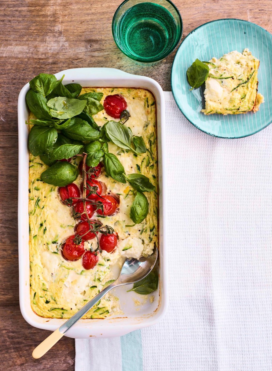Kesäkurpitsan mehevöittämä uunimunakas kruunaa viikonlopun hitaan aamiaisen.