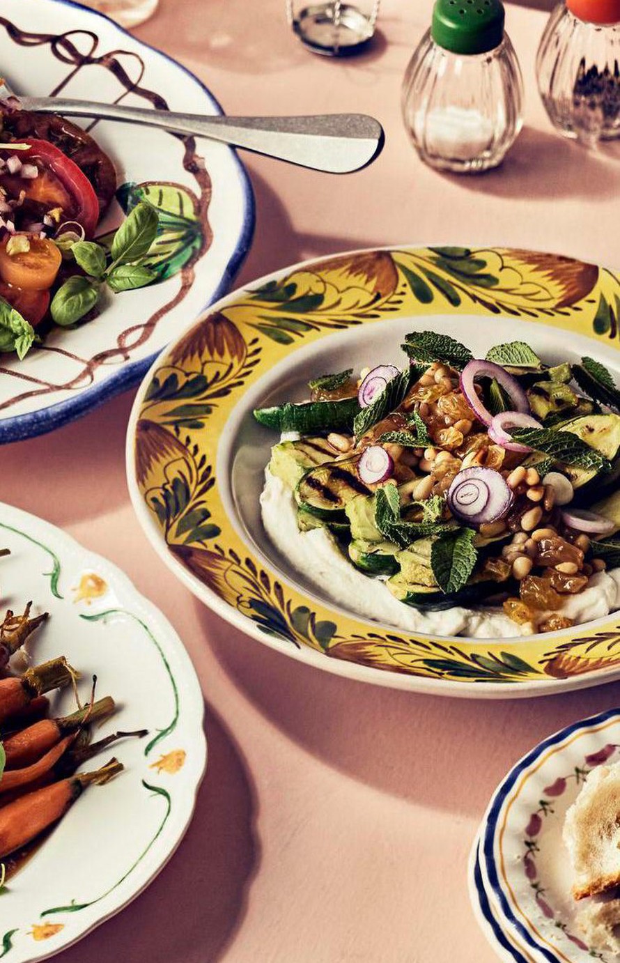 Ennen kesäkurpitsoiden grillaamista kannattaa valmistaa kuohkea ricotta, jonka päälle kasvikset ladotaan. Ricottaa vatkataan öljytilkan kanssa, ja kun se on muuttunut kuohkeaksi, se saa makua hunajasta ja mausteista.