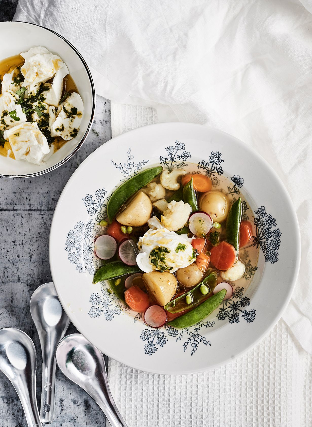 - Tarjoa kesäkeitto yrttimozzarellan kanssa.