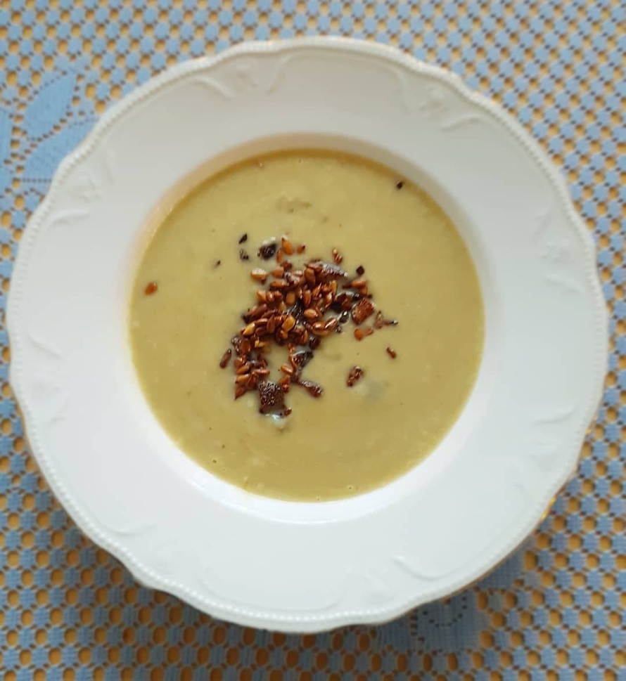 Juhlapyhien ja pikkujoulujen jälkeen maistuu kevyt pehmeä parsa-kukkakaalikeitto. Tämä on erittäin helppo ja nopea tehdä ja maistuu samettisen pehmeältä. Keiton kruunaa valkosipuliset krutongit ja/tai paahdetut auringonkukansiemenet.