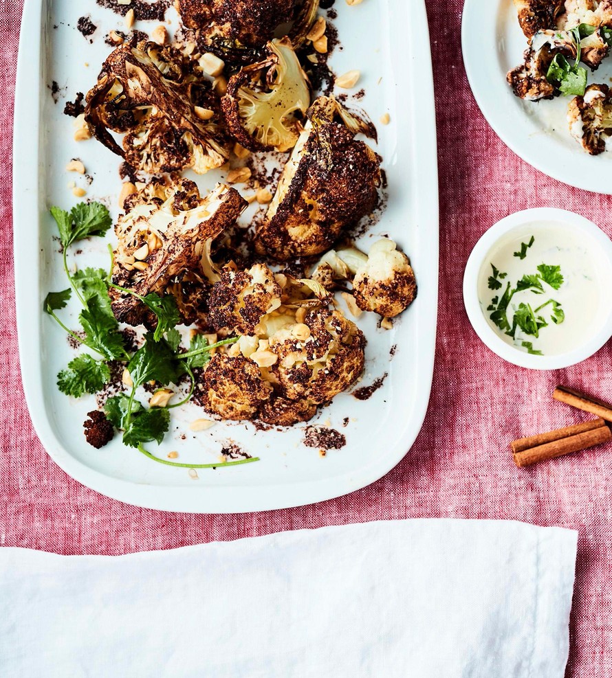- Rouhi suolapähkinät kypsien kukkakaalien pinnalle. Tarjoa korianterijogurtin kanssa.