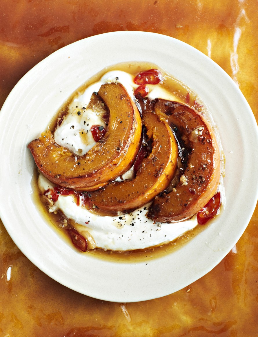 Purista sitruunan mehu pannuun kypsän kurpitsan päälle, kiehauta mehu ja mausta kurpitsat suolalla. Levitä fetadippi lautaselle, lisää kurpitsat päälle ja viimeistele lämpimällä chilihunajalla.