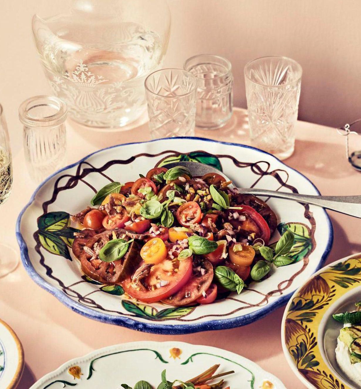 Kun tomaatit ovat parhaimmillaan, niistä tehdyt salaatit kannattaa pitää yksinkertaisina ja valita muut ainekset niin että tomaatin maku korostuu.