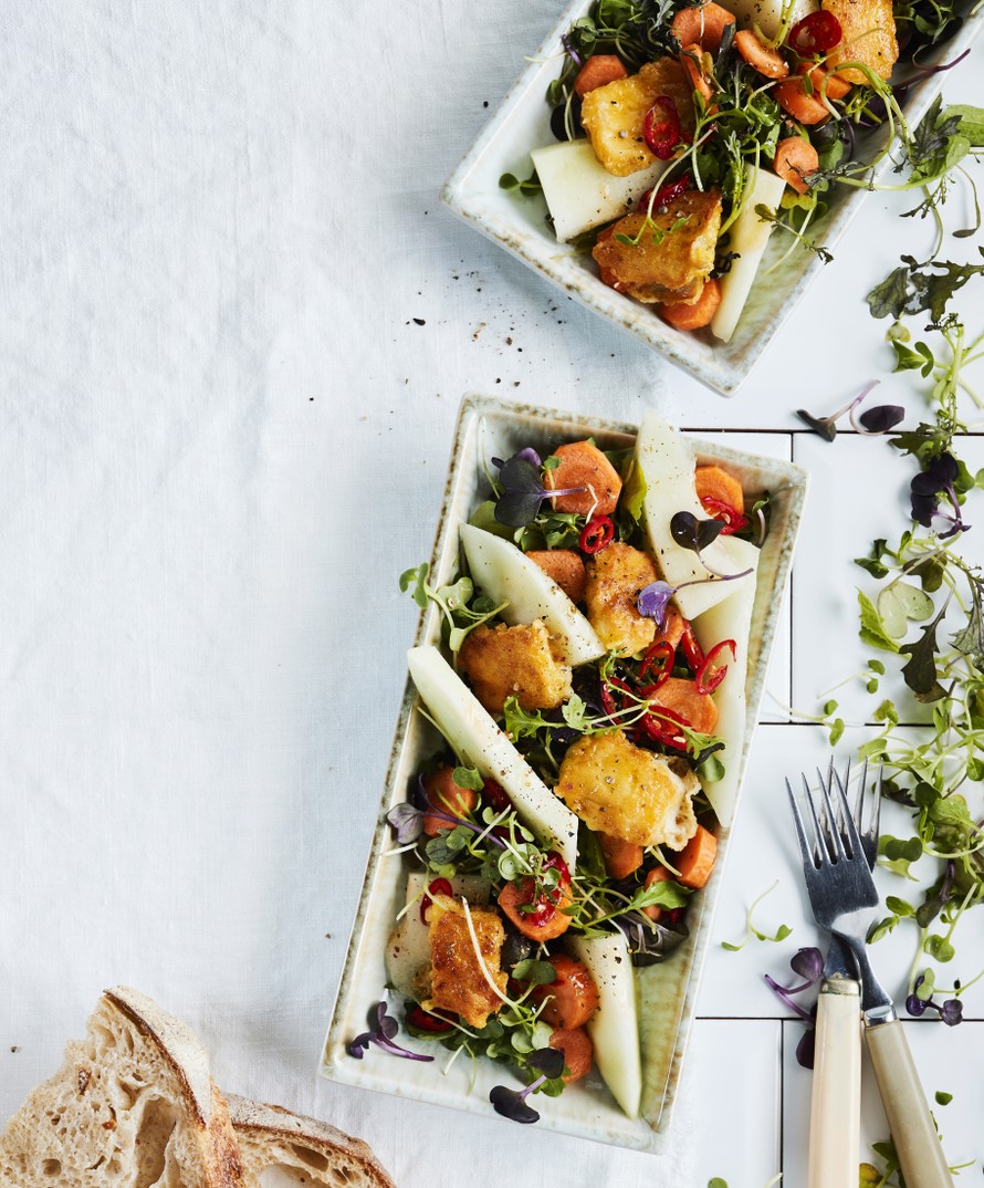 Leivitettyä juustoa ja mehukasta melonia – tähän salaattiin syntyy suorastaan himo.
