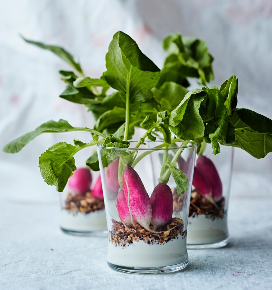 Kokonaiset rapeat retiisit dipataan paahteiseen dukkahiin ja hapokkaaseen jogurttiin. Tämä alkupala on superhelppo, vaikka sen esikuva löytyy Nomasta. Retiisistä voi syödä myös naatit!
