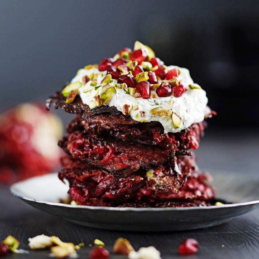 - Tarjoa kuumat röstit jogurttikastikkeen, granaattiomenan siementen ja pistaasien kanssa.