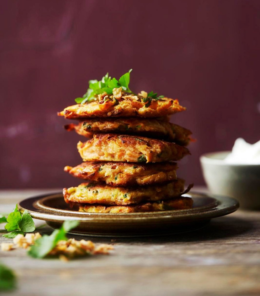 Tarjoa porkkanapihvit sipulirouheen ja turkkilaisen jogurtin kanssa.