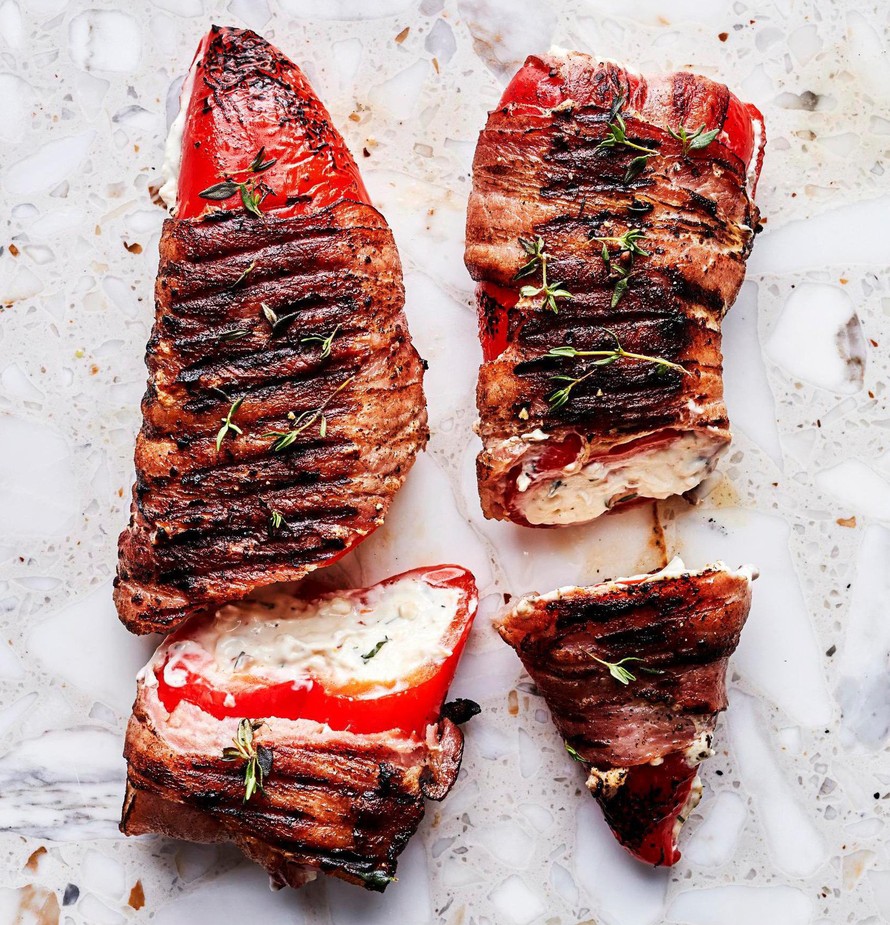Grillaa paprikoita noin 5 minuuttia tai kunnes pekoni on kypsää.