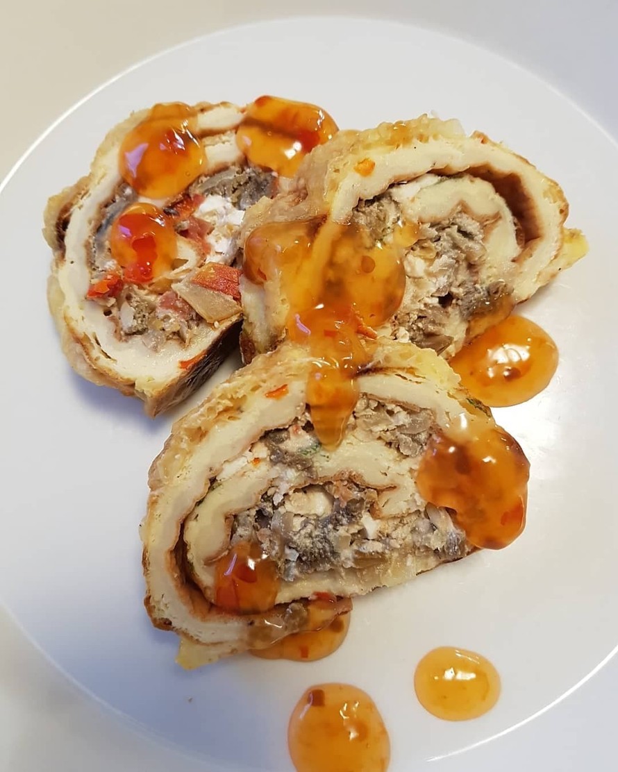 Olen ihastunut näihin munakasrulliin. Ne ovat todella nopeita ja helppoja tehdä ja sinnehän voi täytteeksi laittaa vaikka mitä. Palat maistuvat kylmänä tai lämmitettynä. Itse tykkään syödä näitä Asian Sweet Chili kastikkeen kanssa.