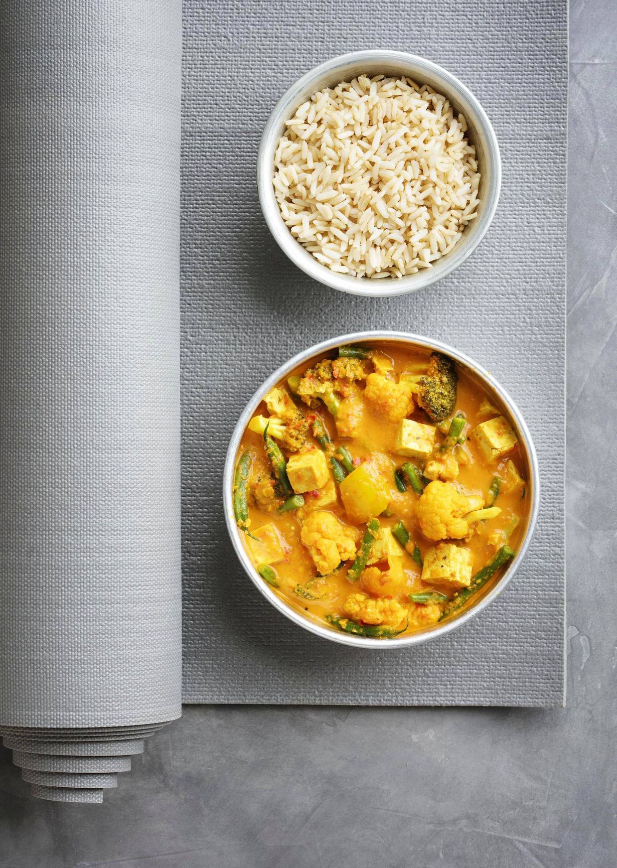 Kasviscurryyn valmistetaan aluksi punainen tahna, jonka tulisuutta voit säädellä chilin siemenillä. Ruuan makumaailma on peräisin Kaakkois-Aasiasta, ja sen aromaattiset mausteet kannattelevat ihanasti monipuolista kasviskimaraa.