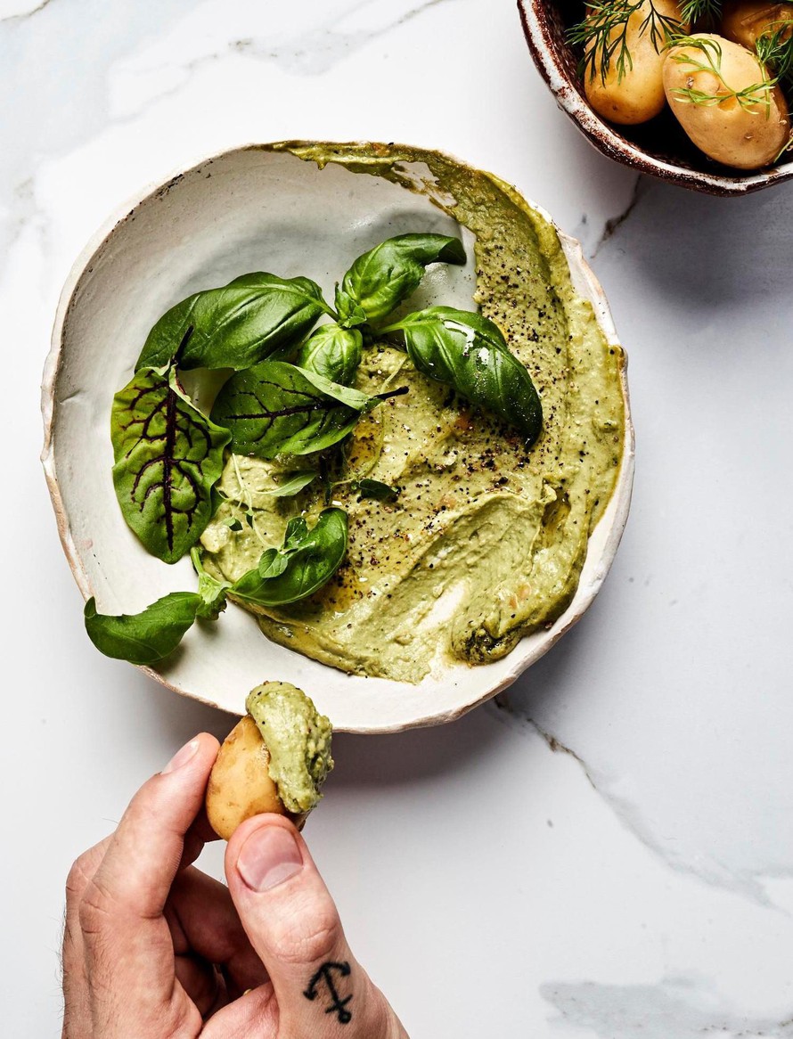 Pyöräytä yrttiruukkujen loput tuorejuuston ja kikherneiden kanssa tahnaksi. Nauti hyvän leivän tai perunoiden kanssa.