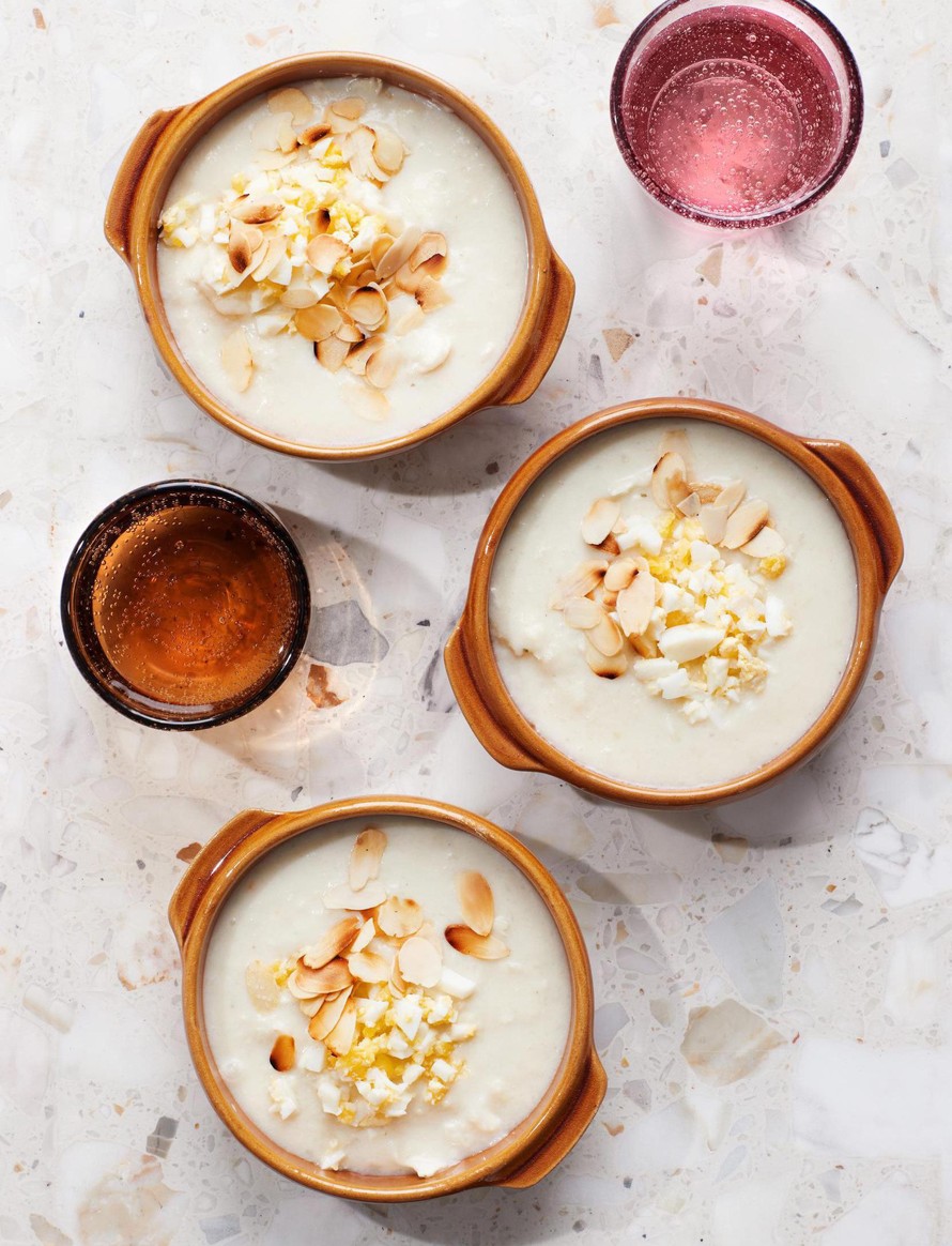 Valkoista valkoisella! Kukkakaalin ja kookoksen makean kesäinen yhdistelmä saa kaivattua ryhtiä parmesaanista. Keitetyt kananmunat tekevät keitosta ruokaisan.